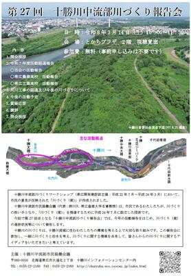 3月14日10時より、とかちプラザで開催される第27回十勝川中流部川づくり報告会の発
