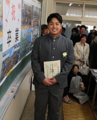 帯広建設業協会長賞。この賞は、学業と部活動を両立させ、持続的な努力と情熱により顕著な成果をあげた学生を顕彰するものです。真摯な姿勢が周囲の模範となっており、将来、建設業界の技術者として地域整備に貢献することが強く期待される者を賞するものです。