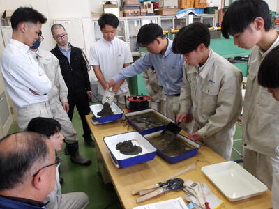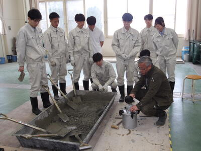 2月19日、環境土木科2年生はコンクリート材料試験の実習を行いました。