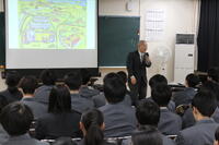 12月11日(木)道内工業高校建築科巡回講演会が行われ、北翔大学の水野先生による「工業高校生の強みを生かして-美しく老い生き続ける建築作品へ-」という題目で講演をしていただきました。