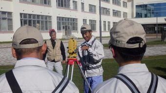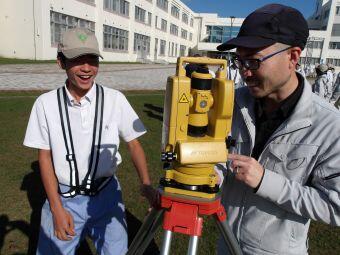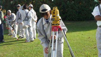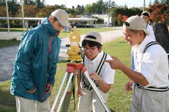 実習開始前、来年度のものづくり大会の測量部門に選抜されている3名はみんなより先にセオドライトの取り扱いの指導を受けているため、この日の実習は彼らがファシリテーターとして活躍してくれました。