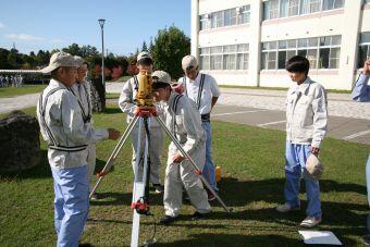 10月14日、環境土木科の外で行う実習は1年生のセオドライト据え付けの実習を最後に今年度は終了しました。