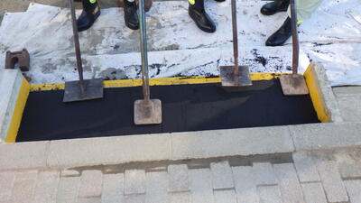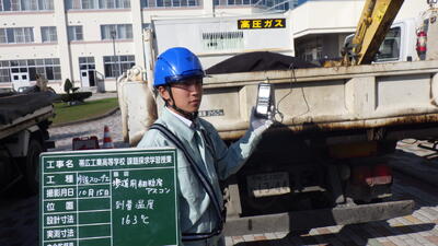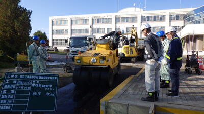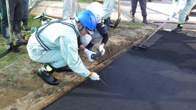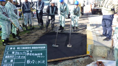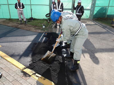 更に高温に熱したコテをかけて敷均しをしています。現場写真の撮影の方法も学んでいます。