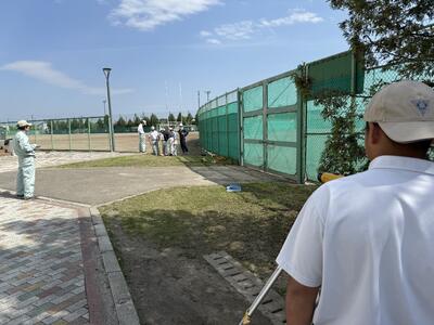 6月はスケジュール計画、計画図面作図、使用材料計画、原価管理工程管理安全管理を行いました。インターロッキングをはずして全面スロープにする計画やグラウンド通路の水はけの悪さの改善など様々な計画を東日本冨士新道路株式会社様に提案しました。実際の工事は多くて4回しか行えないことなどから、9月24日に安全設備の敷設、10月1日に暗渠排水工、路床工、路盤工、そして10月15日の舗装工を行うという計画が7月に決定しました。