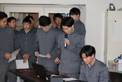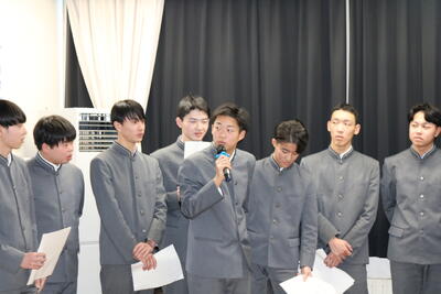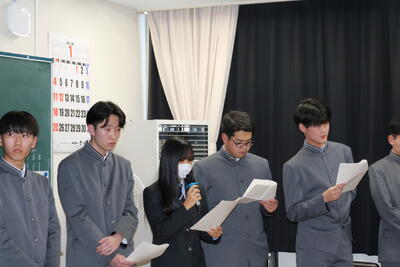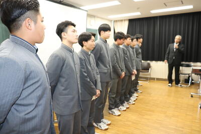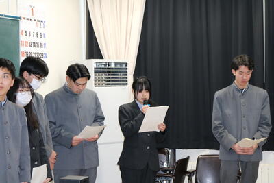 2年生が教室に戻った後、3年生が会場に入り引き続き、終了式が行われました。
