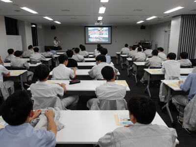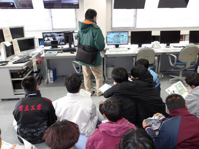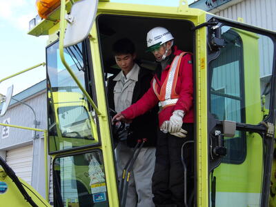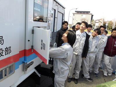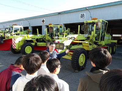 次に帯広道路事務所に行き除雪車両の見学、災害対策用車両の見学を行いました。生徒は楽しみながらもこれらの仕事の重要性を実感していた様子でした。