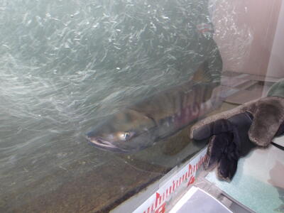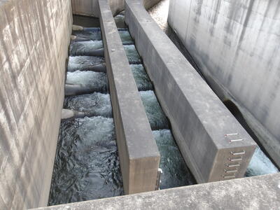 千代田新水路は魚道が設置してあり、魚がそれを通る様子を観察しました。
