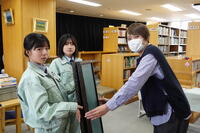 このたび、本校3年建築科に在籍する大瀨戸さんと山本さんが、課題研究として取り組んでいた図書館ウエルカムボードが完成し、帯工図書館に寄贈してくれました!