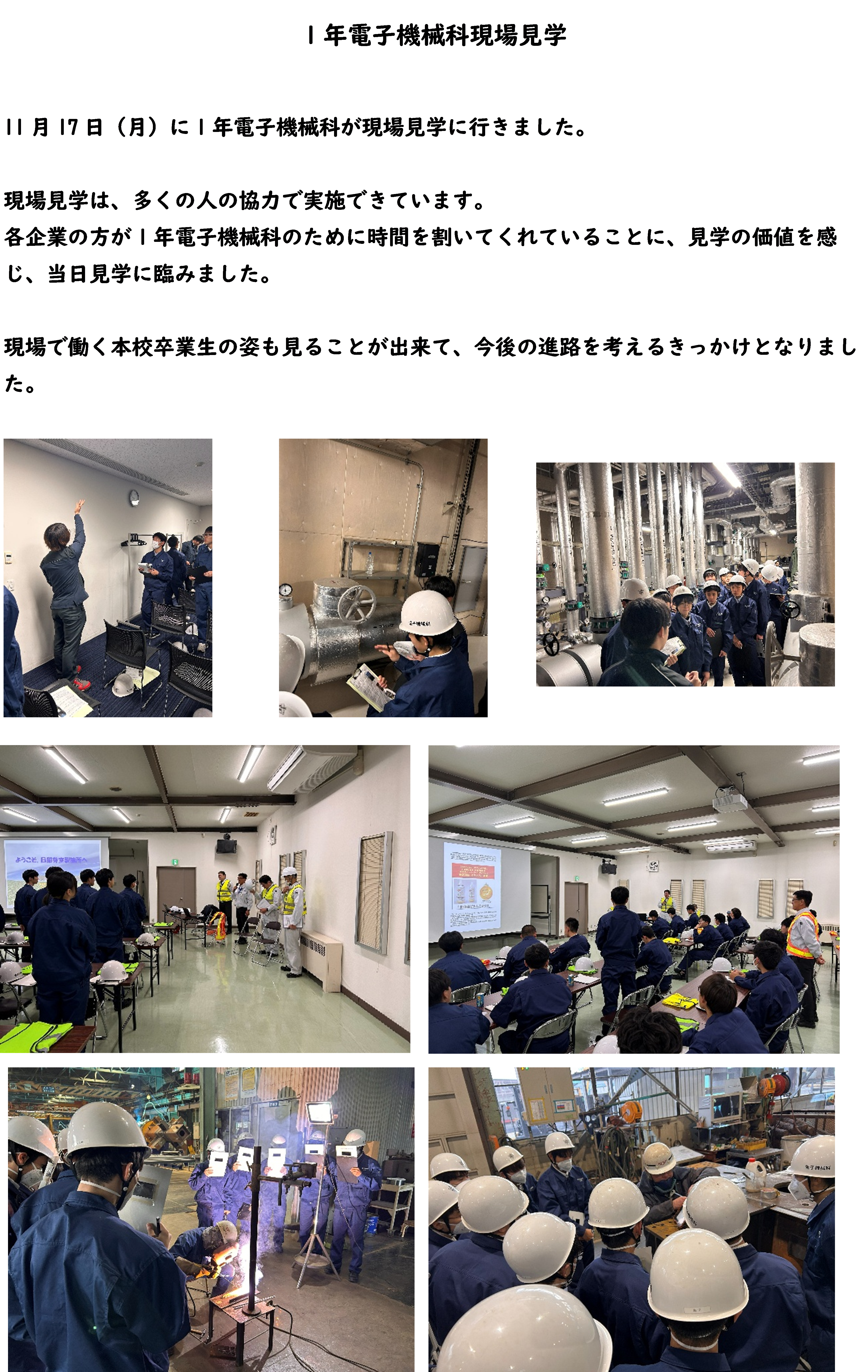 (電子機械科)1年電子機械科現場見学